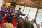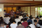 白山公園の一画にある燕喜館(えんきかん)の奥座敷での単独ライブ。登録有形文化財にもなっている歴史的建築物です。文化のかおり漂う建物の奥座敷での演奏には、当日偶然いらっしゃったお客様を含めとても多くのお客様にご来場いただきました。ご一緒に過ごしていただく2時間を少しでも楽にしていただこうと、座布団と椅子をゆったり配置したのですが、開演をお待ちの皆さんには前へおつめいただいた上、追加の座布団で脚もよく伸ばせない状態となり、大変申し訳ありませんでした。また会場に入れず、廊下などでお聴きいただいた皆さま、本当にありがとうございました。