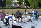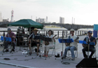 新潟市のシンボル「萬代橋」の誕生について、萬代橋に想いを寄せ盛大にお祝いするお祭り『萬代橋誕生祭』ステージに今年も出演させていただきました。10:45のオープニングセレモニーのみなと・さがんを渡る風は心地良かったのですが、目もくらむような日差しに汗が噴き出してきました。水辺のコンサートのスタートは、万代太鼓の「和童」に、消防艇の放水が花を添え、ゆんたくの出番の頃は少し日が翳って来てはくれましたが、客席はまさに日盛りとなり無人となりながらも、テントの中などからの手拍子に加え、一緒に歌っていただいたことに感謝致します。本当、暑かったですね(^^ゞ