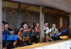 新潟市西区にある「本格沖縄料理いちゃりば!!」さんで店内ライブ演奏をさせていただきました。今年春の開店一周年「大感謝祭」イベントでの演奏が好評だったとのことで、再度店長さんからお声がけをいただきました。今回は完全予約入替制で2ステージ、この日限定の特別メニュー【三線定食】も付いて、沖縄の音楽とお料理をたっぷり楽しんでいただきました。各ステージとも満員のお客様と一緒に乾杯したり、歌ったり、カチャーシーを踊ったりと、とても楽しいライブ演奏となりました。わざわざ遠方から私たちの演奏を聴きに来てくださった沖縄ご出身のお客様からは「沖縄県民のためにこれからも新潟でずーっと活動を続けてほしい」と激励のお言葉もいただきました。素敵なプログラムもご用意いただき嬉しかったです。演奏が終わってからはそのままお店で打ち上げ。美味しいお料理とお酒を堪能しました。演奏を聴いていただきましたお客様、いちゃりばの店長さんをはじめスタッフの皆さま、本当にありがとうございました。
